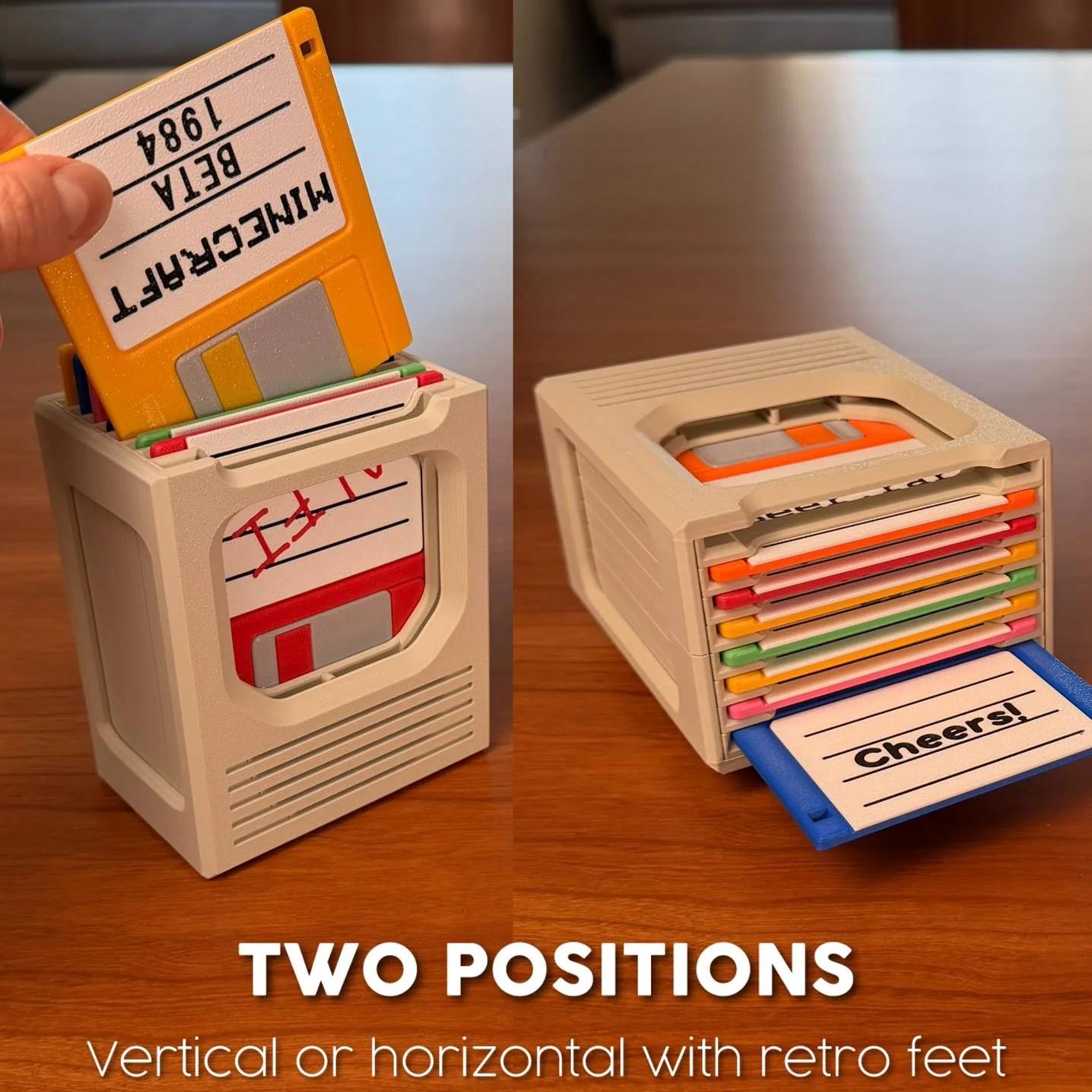 🔸 Horizontal Position: Lay it flat on its retro-style feet, allowing you to slide the coasters out from the side—just like an old floppy disk.